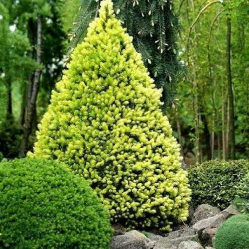Саженец ели сизой Рейнбоуз Энд отлично подходит для создания минималистичных ландшафтных композиций. Он великолепно смотрится в альпинариях, на каменистых садах и в компании с другими миниатюрными хвойными и травянистыми растениями. Эффектно развиваясь на газонах и в общественных парках, это растение также может использоваться в качестве солитера в садах вереска, придавая им не только эстетическую, но и текстурную насыщенность.