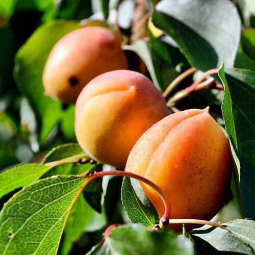 - Округлой, с узким поверхностным швом, неровной формы, привлекательного жёлтого, с красноватым покровом, цвета, покрыты опушением. Мякоть умеренно сочная, жёлтого цвета. Косточка средней величины, легко извлекаемая;