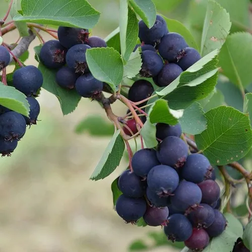 Крупные плоды имеют округло-овальную форму. Их размер составляет 15-17 мм. Окрас фиолетово-синий, в полной спелости становится чёрным. На поверхности плода присутствует лёгкий восковой налёт.