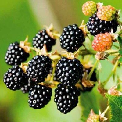 Ягоды саженцев ежевики Апачи — это настоящая находка для гурманов. Их цвет варьируется от синевато-черного до глубокого фиолетового, создавая привлекательный внешний вид. Вкус ягод сладкий и сбалансированный, с легкой кислинкой. Плотная и сочная мякоть обеспечивает отличную текстуру, а овальная, широко-коническая форма ягод делает их одинаково привлекательными как для еды в свежем виде, так и для переработки. Каждая ягода весит от 7 до 9 граммов.